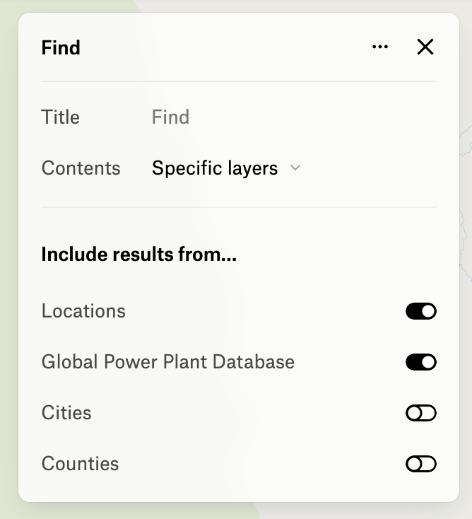 * Choose whether results include search from all layers, specific layers, or locations (places and addresses).